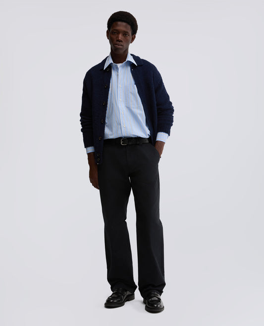 Strickjacke im Hemdstil aus reiner, angerauter Shetland-Wolle. Modell mit Frontverschluss mit Knöpfen und Hemdkragen. Eine raffinierte Verarbeitung in Rippoptik rundet die armelbundchen und den Saum des Kleidungsstucks ab. Regulare Passform.- €320,00