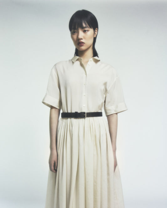Die Kollektion SS26 vereint alle Schlüsselelemente des Stils von Alberto Aspesi: eine schlichte und bewusste Weiblichkeit, klare Linien und eine beharrliche Suche nach den besten Stoffen. Gewaschene Seide, Nadelstreifenanzüge aus Baumwolle und Metallfäden, Workwear-Elemente und militärische Akzente stehen neben Kleidern, Blusen und Röcken von zurückhaltender Weiblichkeit. Jedes Kleidungsstück zeugt von einer ausgewogenen Balance zwischen Kraft und Leichtigkeit.