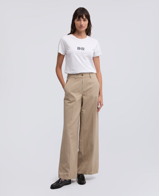 Diese Kapselkollektion ist eine Einladung zur Funktionalität, zum Aufbau, zur Entscheidung, Kleidung zu tragen, die nicht vergeht, sondern bleibt. Kleidung, die keinen Raum beansprucht, sondern ihn ausfüllt. Eine Stille, die auch im ikonischen T-Shirt SILENZIO wiederkehrt, das zum ersten Mal mit der Aufschrift in japanischer Sprache angeboten wird. Nach fünfundzwanzig Jahren ändert dieses Wort seine Form, aber nicht seinen Inhalt. Denn in Japan bedeutet Stille Zuhören, Respekt, Präsenz.