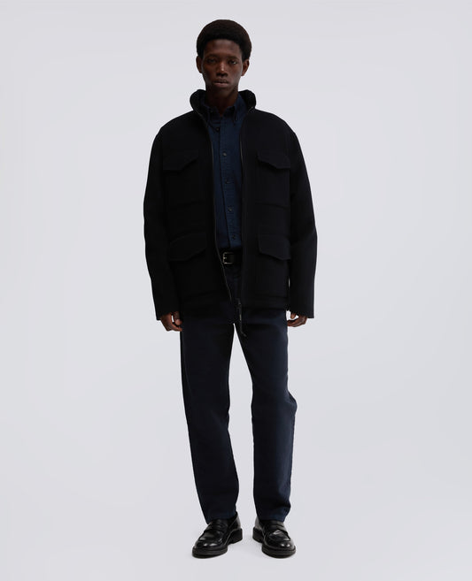 Field jacket made from soft and warm double wool fabric. The model features a front fastening with a hidden double-slider zipper, finished with a pull-tab bearing the Aspesi logo. The design is complete with a stand-up collar and four patch pockets with flap. The...- 8 300 kr