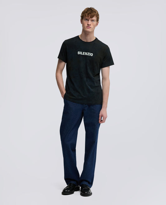 Camiseta de cuello redondo y manga corta confeccionada en punto de puro algodon y caracterizada por el estampado «SILENZIO» en la parte delantera, asi como por el original acabado con efecto paintball. El modelo esta rematado con la etiqueta en forma de banderin de...- €130,00