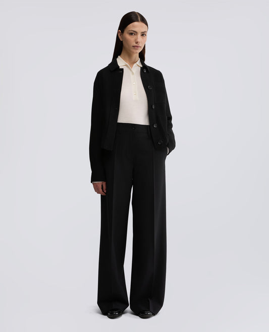 Pantalon de talle alto confeccionado en denim de algodon y caracterizado por un diseno de corte palazzo con pernera ancha y ligeramente acampanada. La prenda cuenta con un practico cierre de cremallera con solapa y boton, trabillas para el cinturon, bolsillos estilo vaqueros en...- €295,00