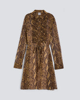 Abito chemisier in crepon di seta caratterizzato da una linea ad A leggermente svasata, da una stampa pitone all over e da una sottoveste in viscosa con spalline regolabili. Il modello presenta maniche lunghe rifinite da polsini con bottone, tasche inserite nei fianchi e...- €1.100,00